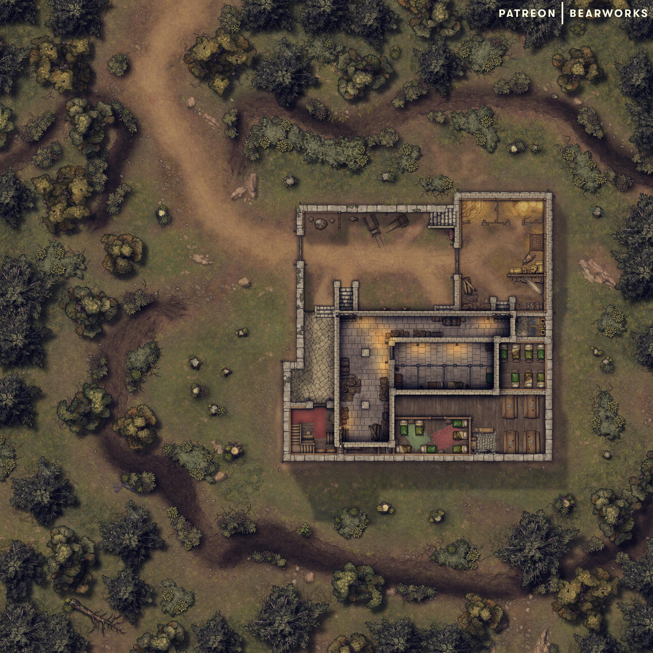 Rural Fort Basement| Battlemap | 50×50 by BearworksHQ on DeviantArt