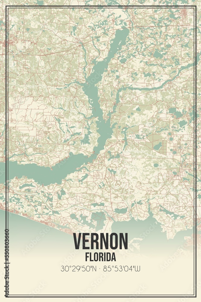 Retro US city map of Vernon, Florida. Vintage street map. Stock
